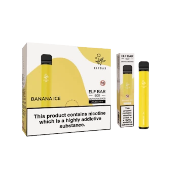 The compact Elf Bar Banana Ice disposable vape kit comes pre-filled and ready to use. Each Elf Bar works for up to 600 puffs and once used up can just be replaced with a new disposable vape: no refilling or other maintenance required. Every Banana Ice disposable vape is simple to use and compact. It comes prefilled with 2ml of e-liquid and 20mg nic salt.