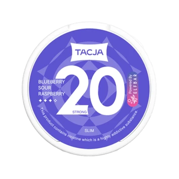 The Elf Bar TACJA Blueberry Sour Raspberry nicotine pouches 20 mg are a new vaping product from Elf Bar. The pouches come in a slim format and are free from smoke, vapour and odours. Each can comes with 20 pouches, each containing a berry flavour that is a mixture of blueberry and raspberry.