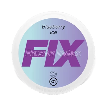 These disposable slim format FIX Blueberry Ice #5 nicotine pouches are designed to fit between the lip and the gum. They release a steady flow of nicotine and the Blueberry Ice flavour. This flavour has been created by combining the blueberry flavour with other Swedish forest berry flavours as well as vanilla, cinnamon and menthol for a cool taste.