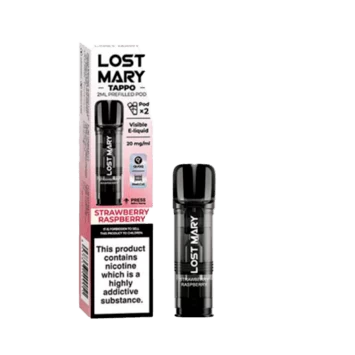 The brand Lost Mary offers a variety of vape products, among which is the Strawberry Raspberry Tappo Prefilled Pods.